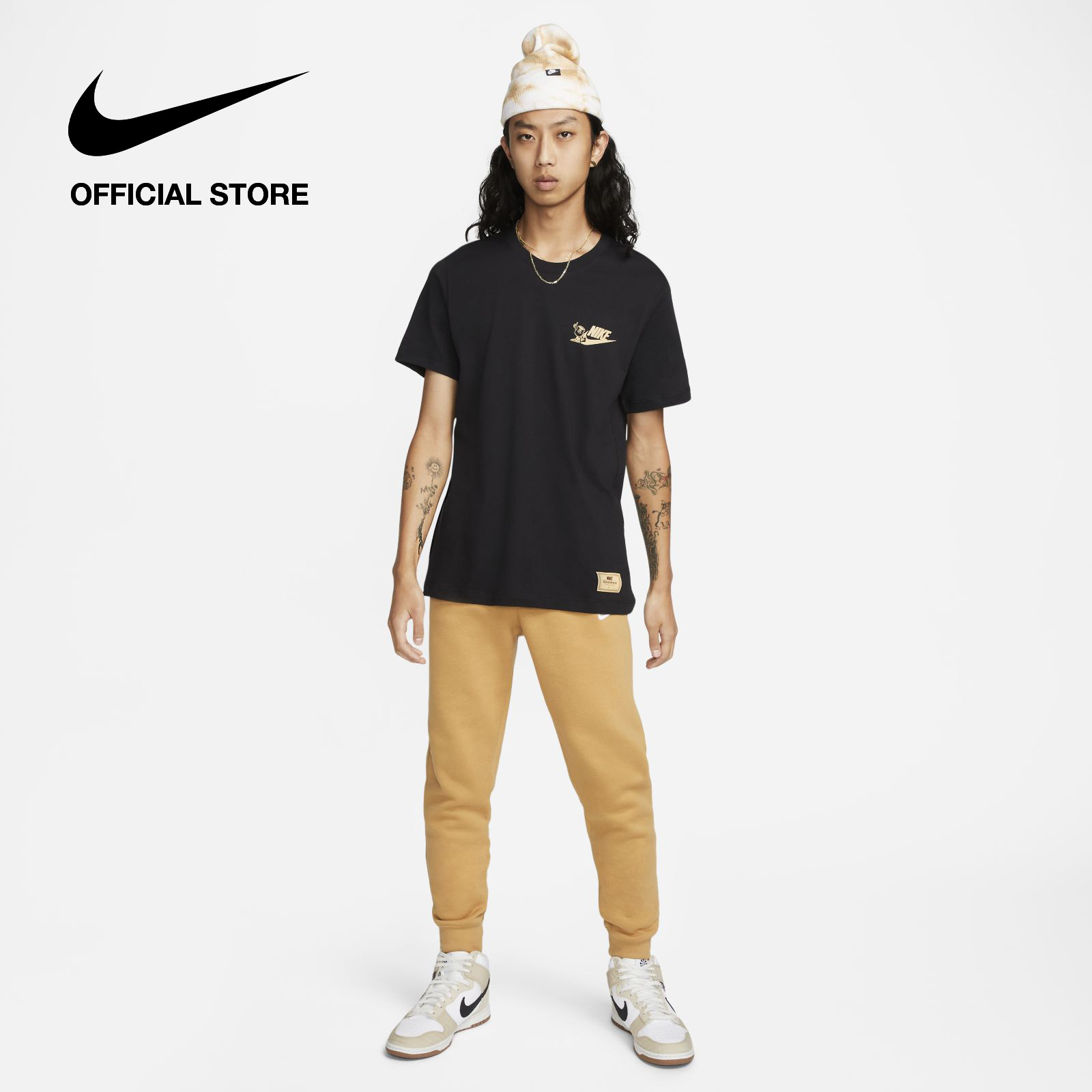Rise and grind with the Swoosh and keep your style as fresh as your coffee beans. Made with our soft, lightweight cotton in a relaxed fit, this tee keeps it casual and comfy all day. Printed cafe-inspired graphics get you going in the morning.